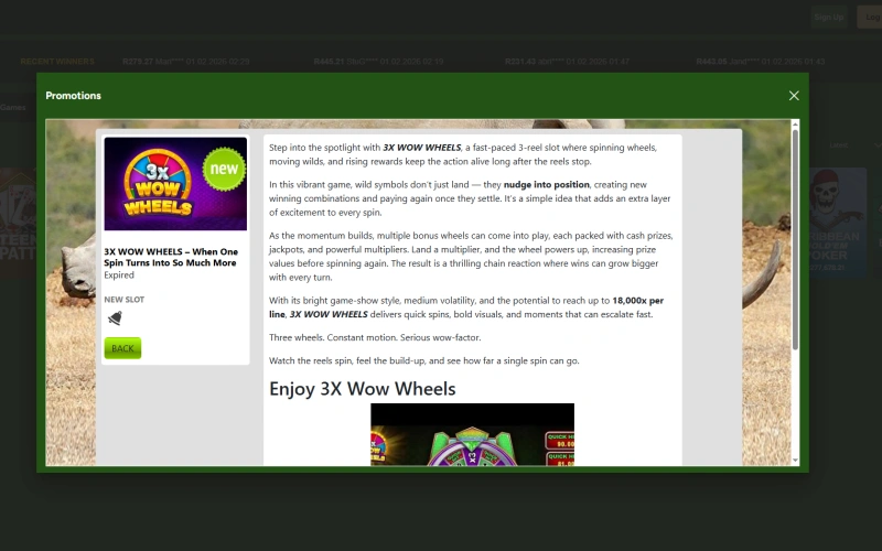 Springbok Casino offers South African players a comprehensive range of promotional rewards designed to enhance their gaming experience and maximize their entertainment value. The platform features generous welcome bonuses that greet new players with substantial bonus funds to explore the casino’s extensive game library. Regular players can benefit from no deposit bonuses, which provide risk-free opportunities to try new games without using their own funds. The cashback program helps cushion losses by returning a percentage of wagers to players’ accounts, while free spins allow slot enthusiasts to enjoy additional rounds on popular titles. Springbok online casino bonuses also include activity-based promotions that reward consistent play and engagement with the platform. Seasonal and special event bonuses add variety throughout the year, ensuring there’s always something exciting available. Loyalty rewards recognize dedicated players with exclusive perks, and reload bonuses keep the excitement going for returning customers.