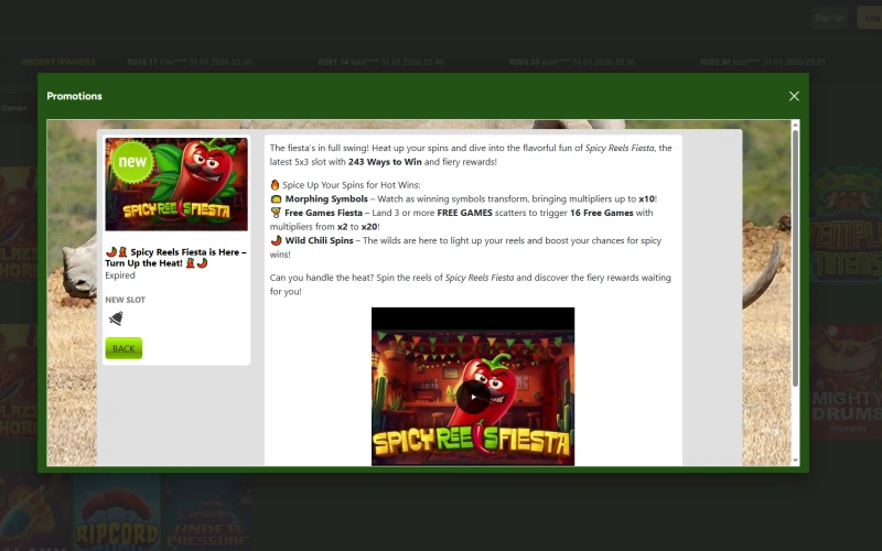 To play at Springbok SA online casino, simply create an account by registering with your personal details, make your first deposit using one of the available banking methods, and then browse the extensive game library to select your preferred slots, table games, or video poker. Once you’ve chosen a game, click to load it and start playing for real money while enjoying generous bonuses and promotions available to South African players.