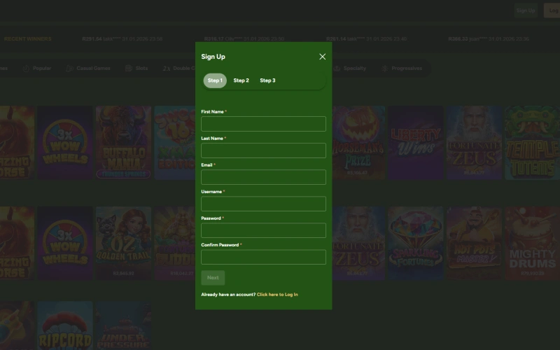 - Visit the Official Website – Navigate to the Springbok Casino homepage and click the “Sign Up” or “Register” button.