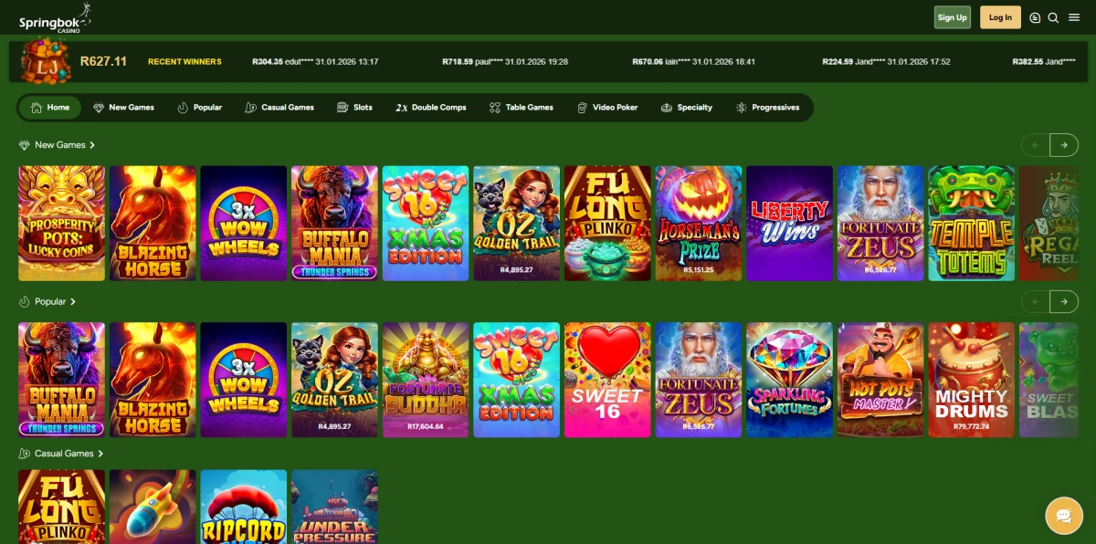 Springbok Casino is a popular online gaming platform that has been serving South African players since 2012, offering a wide range of entertaining casino games in a secure digital environment. The platform features hundreds of slot machines, table games, and specialty games that can be enjoyed from the comfort of home or on mobile devices. Players at Springbok online casino can access their favourite games using South African Rands, making deposits and withdrawals convenient for local gamblers. The casino is licensed and regulated, ensuring fair gameplay and secure transactions for all users. With generous welcome bonuses, regular promotions, and dedicated customer support available in English, it has become a trusted destination for South African gaming enthusiasts.